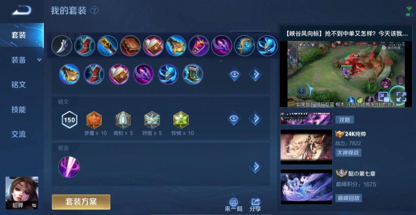 开局学一技能落·红雨准来回两段伤害清野速度杠杠的。之后主加一技能副升二技能,有大招就优先点大。二技能缘·心结可是貂蝉的灵魂,不仅用来赶路穿墙抢时间,躲技能关键就看那一下无敌帧,玩得溜的貂蝉能让对面技能全放空。召唤师技能老老实实带惩戒,这是打野的本分,控龙抢野就靠它了。要是对面控制多得让人头皮发麻,比如妲己墨子连环控,那净化也能考虑带一手,解掉控制才能继续跳舞。铭文搭配推荐10个梦魇、10个心眼、10个狩猎,这套组合给的法术穿透让前期打人更疼,移速和攻速加成走位刷野都顺手。