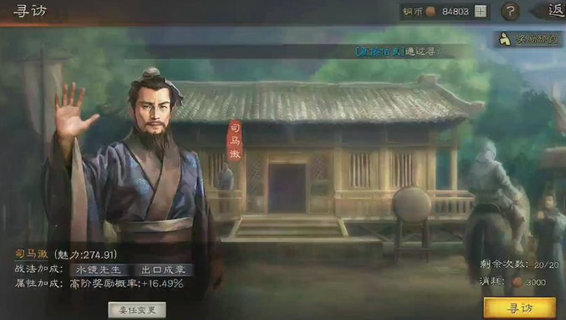 让你的寻访台闪闪发光,咱们得先明白寻访台是咱们主城里的小宝藏,每天有固定次数可以碰碰运气,次数上限跟着寻访台的等级走,升满后一天能有20次机会呢。这里的关键在于委任一位魅力值够高的寻访官——魅力越高,摸到高阶奖励的概率就越大。像司马徽、小乔、甄姬这些自带高魅力或者有寻访加成的武将就是咱们的首选,把他们放在这个位置上,你的寻访之路就成功了一半。如果暂时没有这些热门人选,也别急,刘禅、大乔这些同样魅力不俗的伙伴也能顶上,给他们搭配好加魅力的战法,效果一样值得期待。