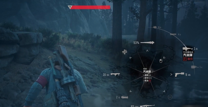 燃烧瓶是应对尸潮的关键道具,分为普通燃烧弹和大燃烧瓶(烧夷弹)两种类型。它们的制作核心材料均为酒瓶、碎布和煤油,但解锁条件与效果存在差异。普通燃烧弹在游戏初期即可制作,而大燃烧瓶需推进主线剧情至火山口湖区域的军事基地任务,触发莎拉的生化武器实验剧情后才会解锁配方。实验室场景中拾取的研究笔记仅作为收集品,对实际制作无影响。制作过程需通过游戏内的求生环界面操作:按住手柄L1键或PC对应按键调出转盘,在可投掷物品类别中选择燃烧瓶图标进行合成,每次制作消耗1酒瓶、1碎布及1煤油,材料充足时可批量制作。
