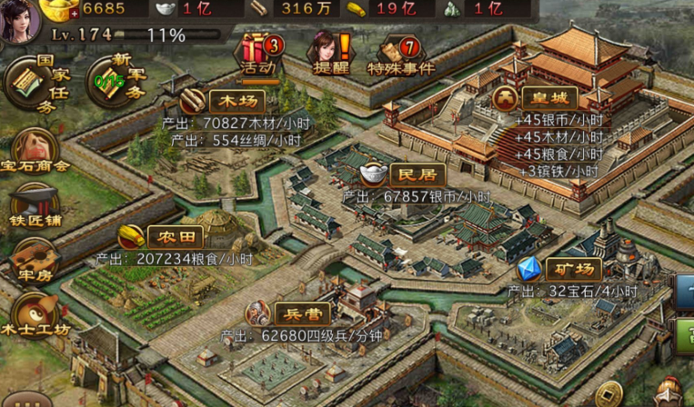 进阶的木材获取方法包括利用集市购买,那里随机出现木材交易,运气好时还能在占领白帝城时享受双倍收益,黑市也是个选项,但通常性价比低,非紧急情况别轻易换取,更高效的是通过政务事件、祭祀活动或副本挑战,这些玩法能额外奖励木材,而且结合了策略元素,让你的游戏过程更有趣,别忘了皇城官职和国家任务,它们定期提供木材奖励,帮助你稳步积累资源。