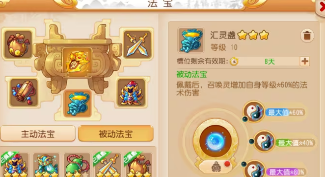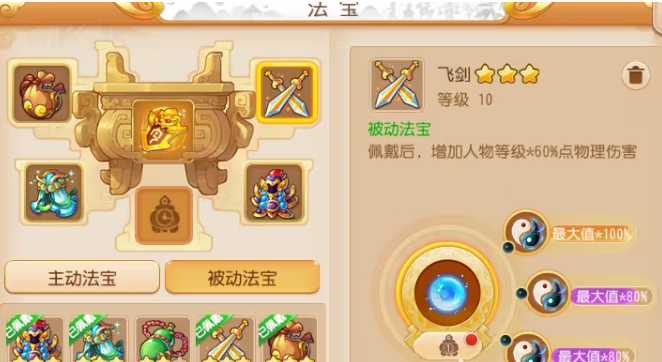 狮驼岭是个物理输出超猛的门派,鹰击技能一打就是一片,连环击爆发也高,但缺点就是防御和法术防御比较低,容易挨揍,所以法宝选对了能让你输出更狠生存更强。游戏里法宝分被动和主动两种,被动法宝是佩戴就持续生效的,对狮驼来说飞剑和金甲仙衣几乎是必带的,一个直接加物理伤害,一个能概率减少物理攻击的伤害,这可是基础保障。