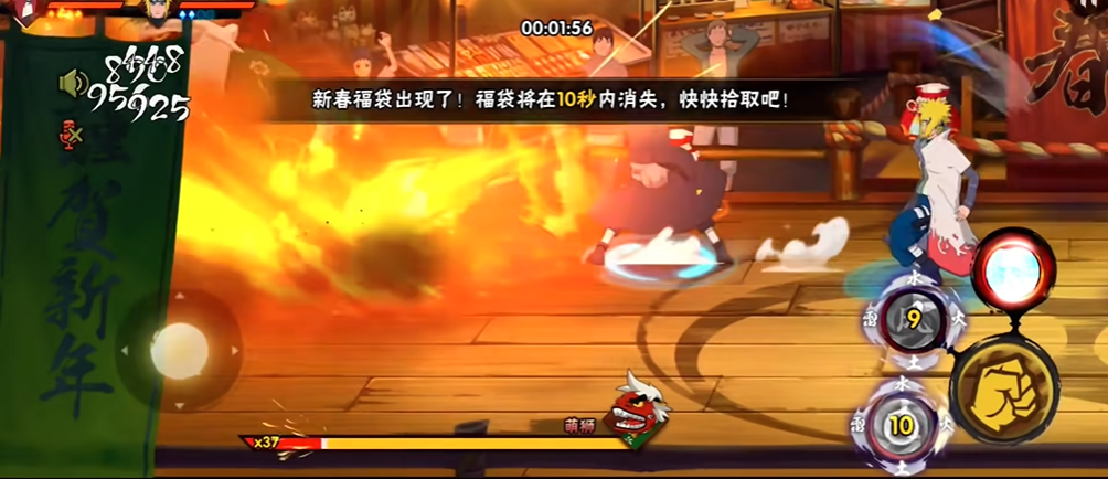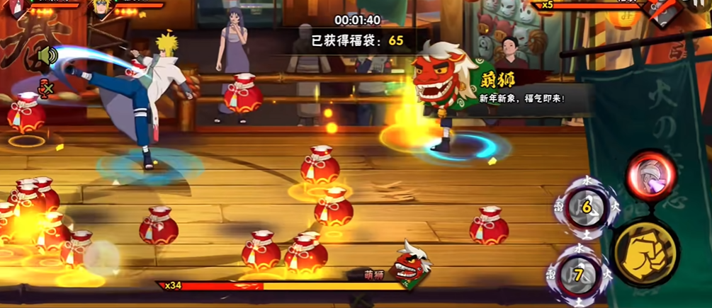 掌握正确的打法策略是高效获取福袋的关键。开局阶段玩家应尽快将萌狮控制到场地角落进行集中输出,避免其四处移动浪费时间。推荐使用具备抓取或强力压制效果的忍者,通过普攻和技能衔接持续造成伤害,但要谨慎使用可能导致目标长时间浮空或击飞的技能,因为这会中断输出节奏并可能让萌狮脱离理想攻击位置。输出的核心思路是在尽可能短的时间内完成对萌狮的消灭,以触发福袋的掉落。