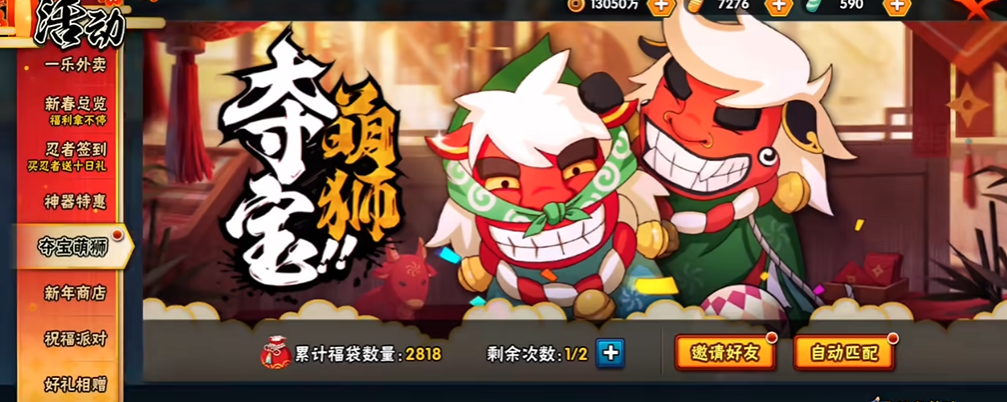 夺宝萌狮是一种战力平衡两人组队的趣味玩法玩家每天可挑战两次每日可额外购买一次挑战次数。在这个玩法中玩家需要攻击萌狮真身使其掉落福袋,副本结束时结算两名玩家共同拾取的福袋总量,达成相应条件可以领取参与奖励和成就奖励。该活动提供的奖励通常包括新年欢乐币以及精炼石等稀缺资源,参与性价比颇高。
