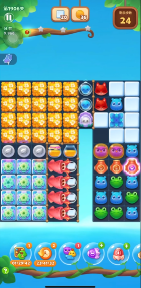 整个关卡的收尾阶段需要对剩余的零星障碍进行精准处理。当大部分雪块和蜂蜜罐头被清除后,版面通常会变得较为开阔,但可能仍有个别位于边角的雪块或蜜罐残留。此时步数可能已显紧张,因此玩家应优先观察并消除那些能直接攻击到剩余障碍的动物,或者利用场上可能残留的魔法炮、水母等辅助攻击单位完成最后清理。