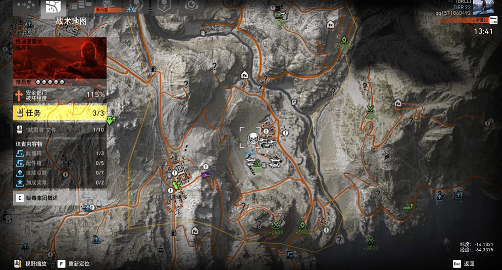 核心思路就一个高效率地完成任务。游戏的经验大头几乎都来自于推进各个省份的主线剧情以及完成各类支线。最有效的路径是规划好你的进攻顺序,游戏中的圣塔布兰卡贩毒集团分为安全、生产、影响力、走私四个部门,建议集中力量一次搞定一个部门。从一个势力较弱的省份开始,比如游戏初始的伊塔夸省,先把那里的主线任务清了。这样做不仅能让你熟悉游戏节奏,更重要的是能解锁反抗军支援功能,后续攻坚会轻松很多。完成主线营救阿马鲁和反抗起义是前期关键,它们为你打开了后续所有玩法的大门。在推进过程中,地图上那些带感叹号的支线任务也值得优先做,它们往往能解锁新的情报或功能,相当于变相开图,为后续更高效地完成任务铺平道路。
