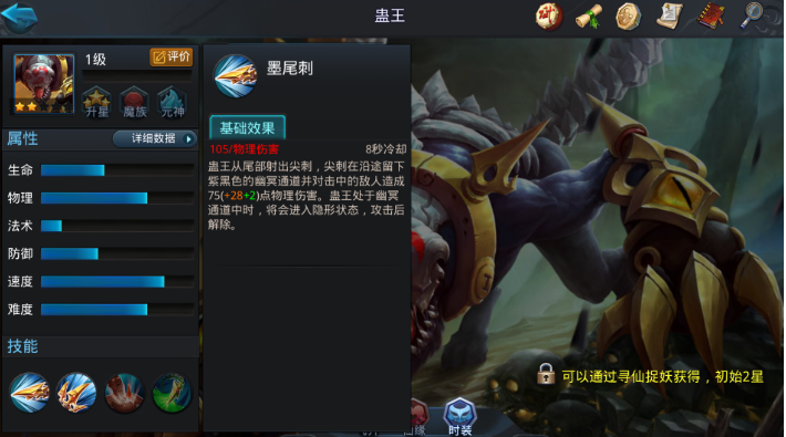蛊王定位为近战物理输出英雄,以其独特的隐身、控制和爆发能力著称,加点策略直接决定他在战场上的威胁程度。作为刺客型角色,蛊王依赖天赋和技能加点来优化偷袭和生存,核心在于强化寄生和翔尾刺的联动效果,确保能在短时间内收割目标。他的技能组合包括墨尾刺创造隐身通道、翔尾刺提供持续击飞伤害、寄生用于保命和爆发,这些都需要通过加点来最大化效用,从而在排行榜或PVP中发挥关键作用。