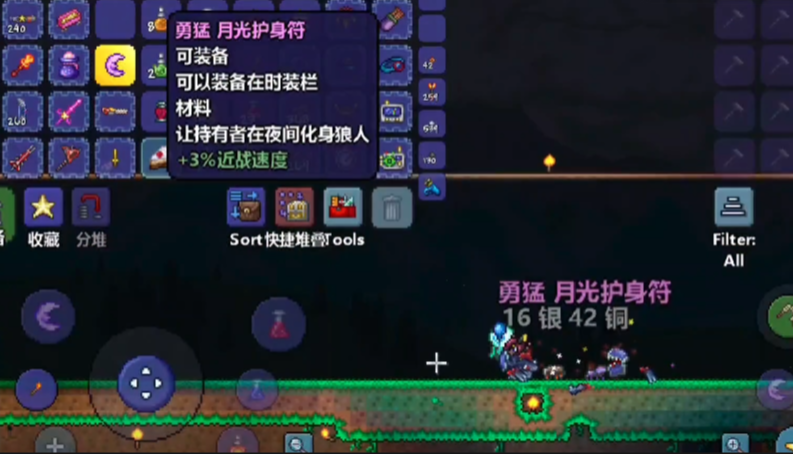 当你成功开启了困难模式后,接下来就需要等待一个特殊的夜晚——血月。血月是游戏中随机发生的一种事件,当它来临时,天空会变成骇人的红色,各种怪物会变得更具攻击性,而一些特殊的NPC也会开始出售平常买不到的稀有商品。动物学家就是其中之一。在这个猩红之夜,你赶紧找到安住在你建造的房子里动物学家,与她对话打开商店界面,就会发现列表中多出了一个售价为30金币的满月尖叫玩具。毫不犹豫地买下它,这个小玩具就是你召唤狼人宝宝的唯一门票。这个过程需要一点运气,因为血月不是每天都会来,你可能得平平安安地度过几个普通的夜晚,才能等到那个合适的时机。