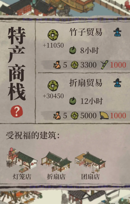 仅仅完成基础摆放只是第一步,商栈的魅力在于其升级系统。普通的初始商栈可以通过特定组合升级为四种形态各异、功能专精的特殊商栈,分别是文化商栈、便民商栈、特产商栈和建材商栈。升级并非消耗道具点击即可,而是需要你在该普通商栈的加成影响范围内,准确放置对应的店铺组合。想要获得桃花外观的文化商栈,你需要在范围内放置两个画室、两个伞店和两个瓷器店,并且这六间店铺都必须至少提升至四级。其他几种商栈的升级条件也类似,都需要对应的两种店铺各两间且达到四级。这个过程是自动触发的,一旦范围内符合条件的店铺就位,普通商栈便会自动升级为相应的特殊形态。