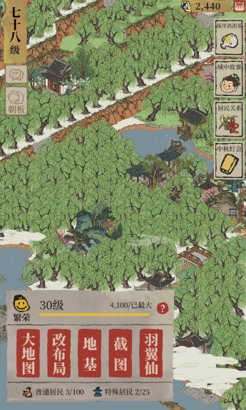 针对具体的种植地点规划,可以依据城市功能分区进行。对于衙门、书院以及各类文化院落等需要营造严肃或雅致氛围的区域,种植松树、竹子等象征品格高洁的树木是合适的选择。在住宅区进行绿化时,应考虑美观与规整的道路规划,可以成排种植树木以提升整体环境的和谐度。若追求更高的繁荣度与人口增长,一种策略是在地图上大面积种植树木,例如用树木铺满非关键区域,这能在一定程度上快速提升繁荣度指标。