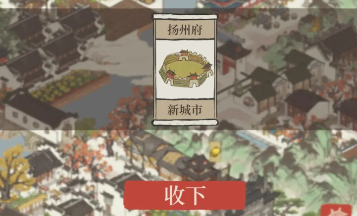 成功完成一次徽商交易后,界面会提供领取奖励的选项,此时与徽商进行对话,他将指引前往新城市扬州府的道路,并正式将扬州府的管辖权交予您。系统会提示您领取解锁扬州府的奖励,通常包括补天石和金画轴等资源。您即可通过游戏大地图界面,在州府列表中切换并选择进入扬州府,开始新的开荒与建设历程。
