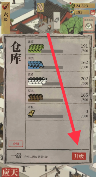 针对用于储存生产物资的资源仓库,提升其容量的基础方法是直接建造更多仓库并对其进行升级。游戏初期,仓库等级较低,玩家可以通过消耗原木等资源来提升单个仓库的等级,从而增加其存储上限。游戏进程推进,当建造的仓库数量达到上限后,进一步提升总容量的主要途径便是将现有仓库升级至更高级别,不过需将仓库升至较高级别时可能需要消耗补天石,因此需要玩家根据自己的资源状况进行权衡。