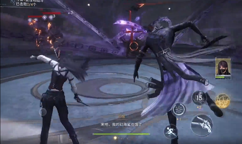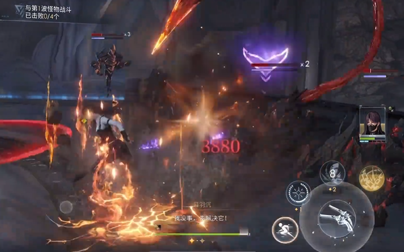 战斗中需要熟练掌握黎深的技能释放节奏,例如其飞天并砸落的高伤害技能需要把握触发时机,以在敌人破盾的虚弱期内打出最大伤害。整个战斗过程要求玩家对怪物的攻击模式有清晰预判,通过精准闪避来维持生存,并将输出集中在敌人护盾被击破后的增伤窗口期。