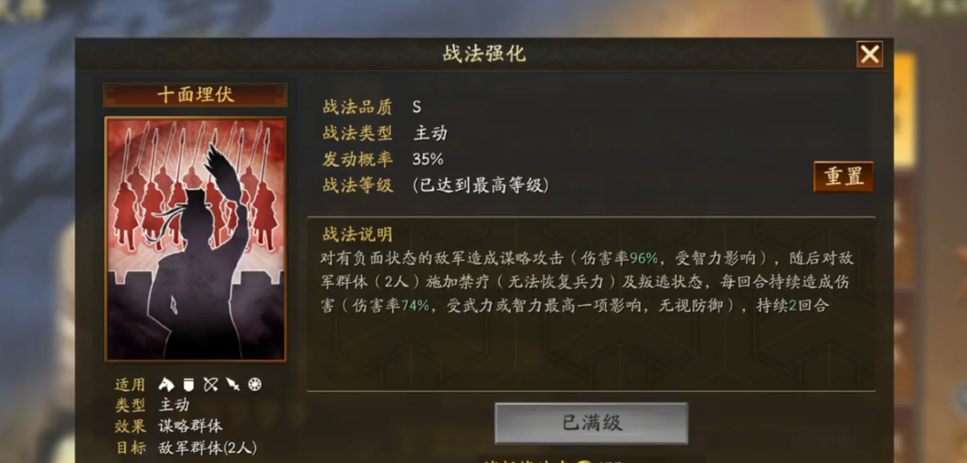 震慑是游戏中最霸道的控制状态,能让目标完全无法行动,无论是普攻还是战法都会被封锁。这种状态通常由高稀有度战法或特定武将触发,一旦命中就能彻底打乱对手的战术布局。由于效果过于强势,震慑类战法的触发概率一般较低,需要合理搭配其他控制手段来提高命中率。被控制状态影响的武将并非完全无计可施,部分武将自带战法可以解除负面状态,比如净化类技能。控制状态大多有持续时间限制,回合结束后会自动解除。