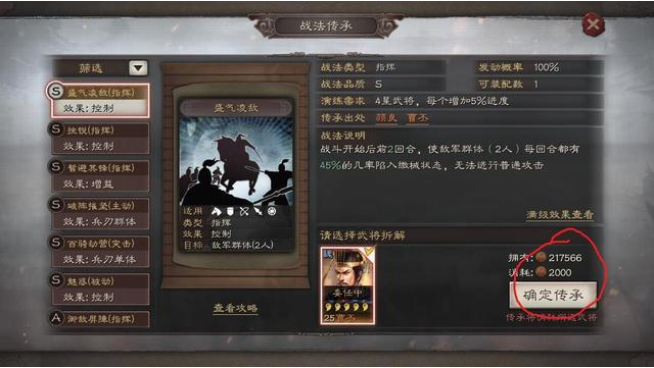 咱们平时抽到的武将不仅能上阵打仗,还能拆解出强力战法——这就是传承。在战法界面右下角找到传承按钮,或者直接点开武将卡左下角的传承选项,选中目标战法确认就行。传承完的战法只是半成品,得靠演练喂武将卡把它练满才能用。拆B级战法得消耗三星武将,A级和S级高级货就更费资源了,得用四星武将当材料慢慢喂到100%进度。所以别急着乱拆卡,先想清楚你要的主力战法是什么,毕竟拆完的武将会消失,资源得花在刀刃上。