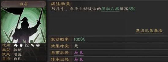 每个武将都有自己擅长的路子,比如自带控场效果的猛将,核心思路就是围绕输出+控制双修来搭。举个常见思路:带个提升主动战法触发率的技能(比如白眉)让核心技能更稳定,再配个能联动控制效果的伤害技(比如横扫千军),这样控住对手的同时还能追加额外效果。千万别闭着眼睛塞高级战法,得看战法之间的配合度。有些战法单独用挺普通,但和特定效果叠加就能发生质变,比如缴械状态下触发震慑这种连锁反应。多观察战法描述里的触发条件,慢慢就能摸出门道。