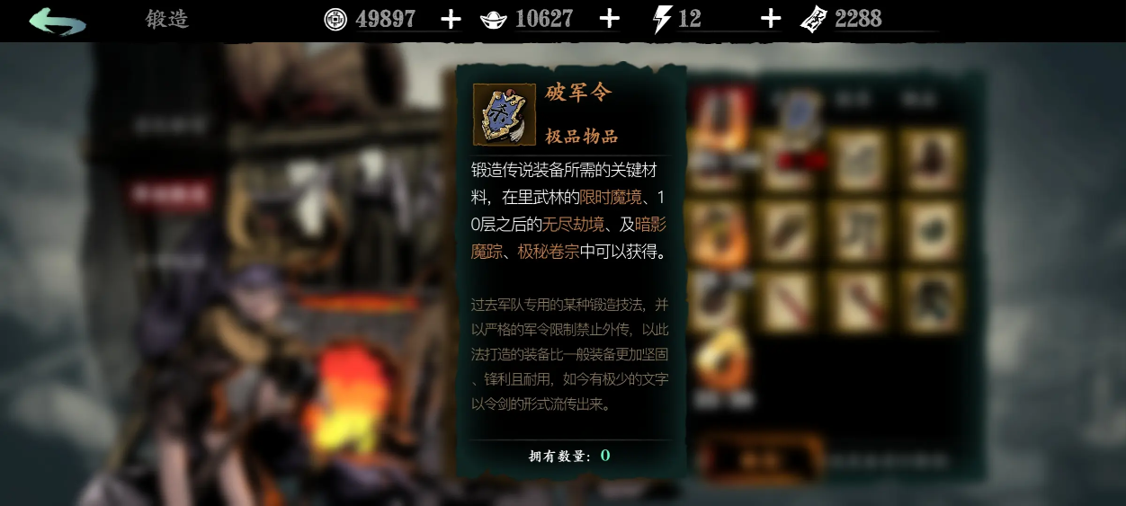 破军和金砖均非轻易可得之物,尤其是破军,其掉落地点(里武林魔境湮灭难度)本身就需要玩家具备相当的战斗能力才能解锁并高效通关。玩家应有心理准备,将此过程视为一个中长期的资源筹备目标,避免因短期未获而急躁。合理规划每日游戏时间,优先保证湮灭难度副本的挑战次数是积累破军的关键,同时利用碎片化时间关注聚宝阁动态或其他常规副本的金砖产出。武林魔境副本是破军的主要产地,深层镜像副本更被认为有较高几率产出所需令牌类道具,但这部分内容通常无法组队,对单体战力要求较高,持续提升自身实力是根本解决之道。