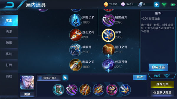 暴力出装的装备顺序推荐是暗影战斧、抵抗之靴、无尽战刃、宗师之力、纯净苍穹和破军。暗影战斧作为起步装备,能提供不错的攻击力和冷却缩减,同时被动效果还能降低敌人移速,帮助你在前期快速清线和追击。抵抗之靴增强你的魔法防御和韧性,减少被控制的时间,确保你能灵活切入战场。无尽战刃和宗师之力是关键输出装,前者大幅提升暴击率和暴击伤害,后者在释放技能后强化普攻,打出额外爆发伤害,这两件装备组合能让你的每次攻击都更具威胁。纯净苍穹提供攻速和暴击加成,主动技能能在被控时减少所受伤害,关键时刻保命;破军则针对残血敌人,增加收割效率,这套装备整体上让你在团战中输出拉满,但别忘了一定要配合大招使用,才能发挥最大效果。