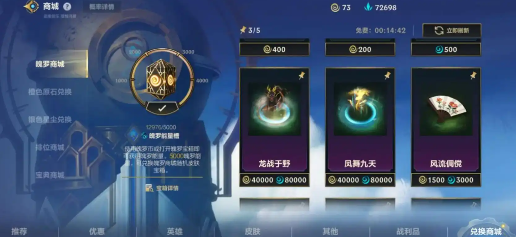 魄罗能量最核心的用处,就是让你有机会拿到免费的皮肤。当你积攒到一定数量,就能在魄罗商店里兑换随机的皮肤宝箱了。打开这些宝箱就像开盲盒,能随机开出不同品质的皮肤,运气好的话甚至能拿到特别炫酷的高级皮肤。这对于不想花钱或者想慢慢收集皮肤的小伙伴来说,真的是一个很棒的途径。所以平时做做任务、参加活动攒能量,不知不觉就能换到惊喜。