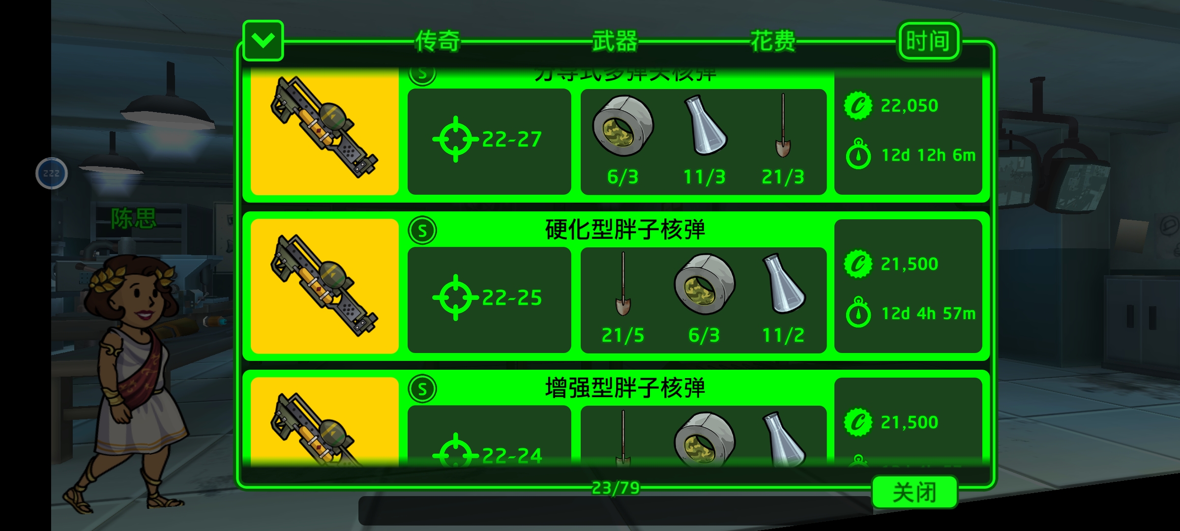 装备制造系统需要合理规划资源分配。蓝色品质武器如高斯步枪、垃圾喷射器伤害稳定在15-20点区间,适合优先批量制造。防具选择应遵循属性专精原则,发电站配备+S装备,水处理厂选择+P装备,核子可乐工厂则需纯E属性防具。E3属性服装虽非顶级,但对居民升级时的血量成长具有关键影响。