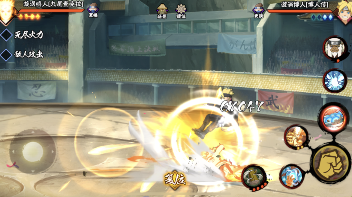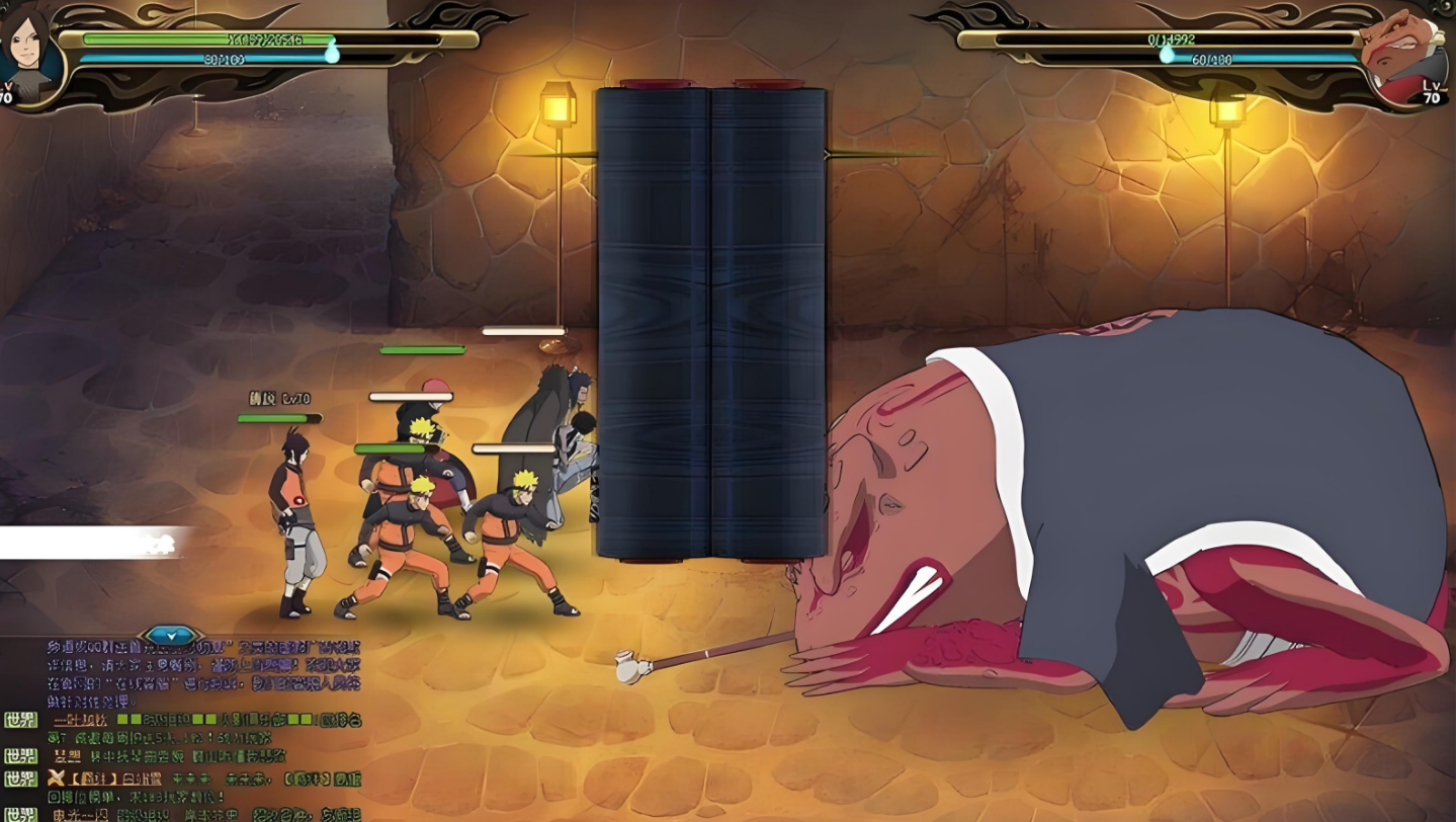 通关过程中需注意敌方蛤蟆仙人的水铁炮技能,该技能伤害极高且无法被打断,因此必须在蛤蟆出现前尽可能削减敌方血量。当蛤蟆登场时,优先使用主角的20查克拉奥义与其对抗,并利用鸣人的分身分摊伤害。第五回合后若敌方剩余单位较多,可依靠火主的控制技能和鸣人的持续输出逐步清场,但需避免拖延至第六回合,否则可能因水铁炮的二次释放导致失败。