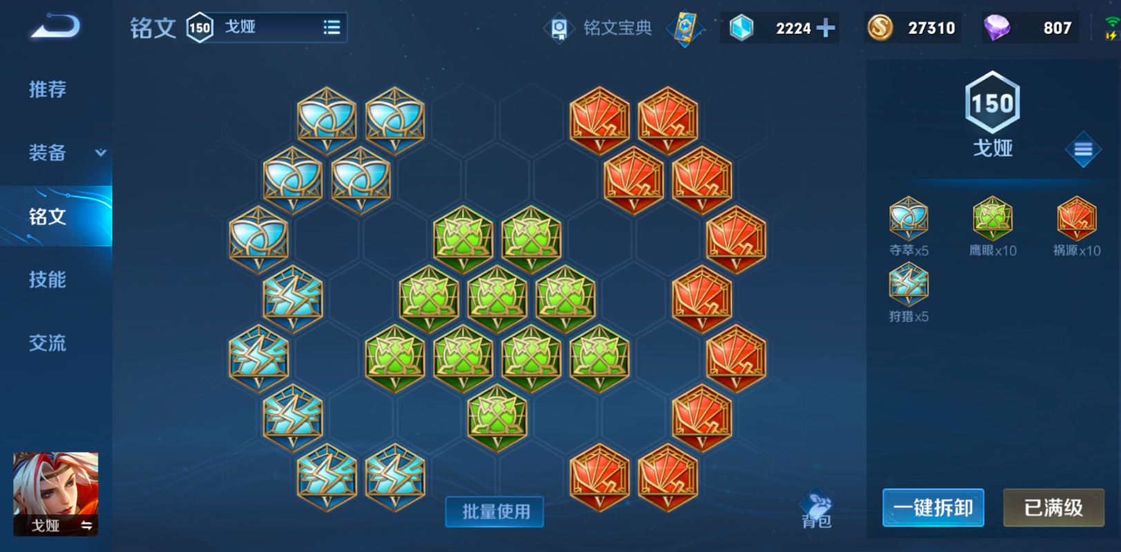 符文搭配也很重要,我们建议选异变、鹰眼和隐匿这套组合,它能提升物理攻击和穿透,同时增加移速,让你追击或逃生更轻松,完全契合不出攻速装的思路。符文属性以强化物攻为主,这样配合装备的暴击和穿透,能弥补攻速缺失的短板;对线时符文带点移速,能帮你更好走位躲技能,毕竟戈娅活着才能持续输出。技能加点优先升一技能和二技能,一技能位移保命,二技能补伤害和机动,大招最后点满,确保前期生存力。