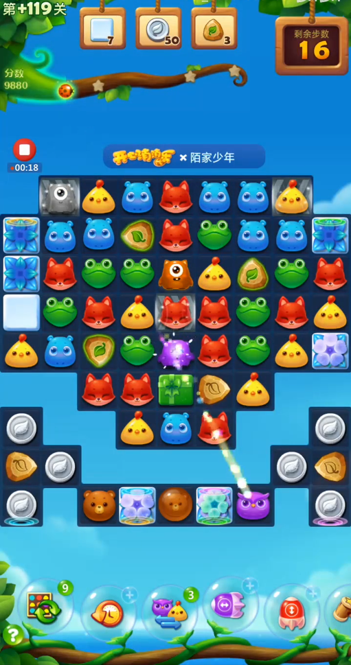 精英关119关的核心目标是收集10个白色墙体、51个银币和4个树叶魔法石,玩家需要在有限步数内通过这些消除操作达成通关条件。该关卡的布局被斜线分割成两个独立区域,呈梯子形延伸,左右分布着雪块、豆荚和褐色毛球等障碍物,其中豆荚的位置固定,右下角设有下落口,但障碍物会阻挡移动路径。挑战在于高效清除雪块和毛球,确保豆荚能顺利传送至目标区域,同时避免步数浪费。