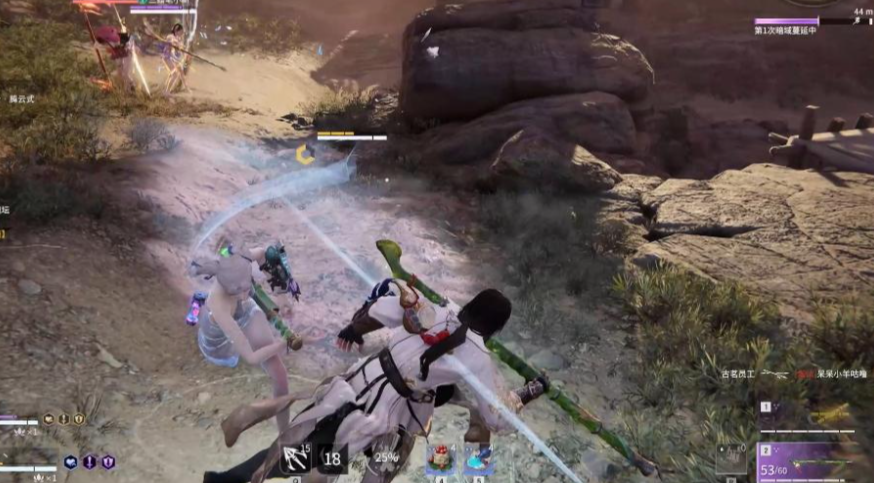 接上后续身法才算真正脱险。起身瞬间按住Shift向侧面闪避,能躲开大部分蓄力劈砍;紧接着长按Shift加方向键转入奔跑状态,快速拉开身位。这时候钩索就是你的好帮手,对准远处树干或屋檐秒接钩锁,能让你瞬间飞出十几米。如果精力够用,滑步蓄力也是个神技——边跑边蓄力的位移既能保安全又随时能反打。别一着急就狂按闪避键,那样反而容易卡在连续翻滚里跑不动,稳住节奏才能溜得漂亮。