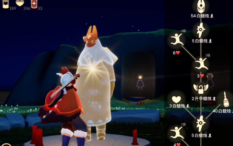 跟狐狸先祖搭上话点亮心火之后,就可以看看它能给啥好东西了。最想要的狐狸面具确实是在兑换列表里,但它不是第一个就能换的哦。咱们得沿着它提供的道具链子一个个解锁下来,先换掉前面几样小东西,最后面具才会亮起来让咱们换。面具本身大概需要准备三十多根普通蜡烛,但别忘了前面解锁那些小玩意儿也得花蜡烛,总共加起来蜡烛需求量不小呢,所以平时跑图勤快点攒蜡烛很重要。要是运气好碰上复刻,蜡烛不够也别硬凑,换面具要紧,其他小物件以后还有机会。