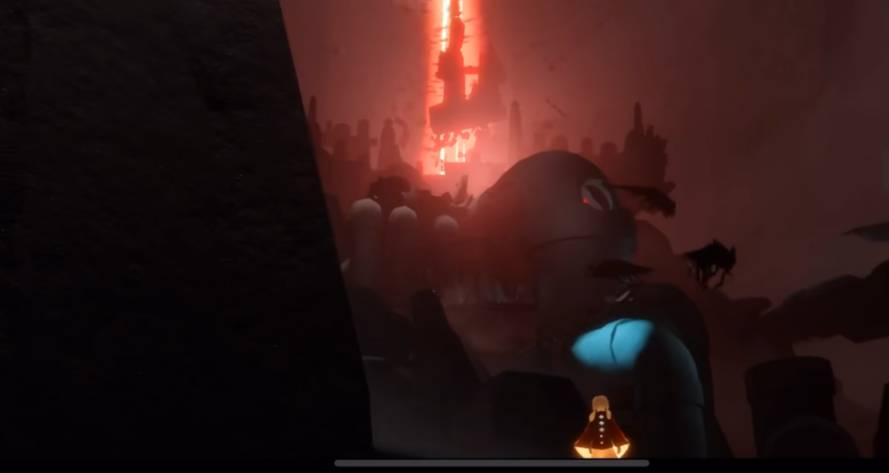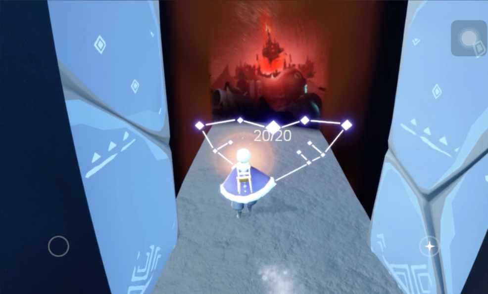 第一阶段需应对间歇性红石雨,每波持续约6秒。移动前需规划路线,确认下一处遮蔽物(如岩石、建筑或石灯台),红石雨停歇后迅速转移至目标点。沿途尽可能点亮先祖石像(即小黑人)以推进献祭进度。石灯台是关键路标,点燃后可恢复心火能量并提供短暂安全区;若被落石击中导致心火熄灭,需立即返回最近点燃的石灯台重新激活。此阶段需警惕冥龙(皮皮虾)的蓝色扫描光线,利用石桥、管道或台阶死角规避照射,扫描结束后快速通过危险区域。