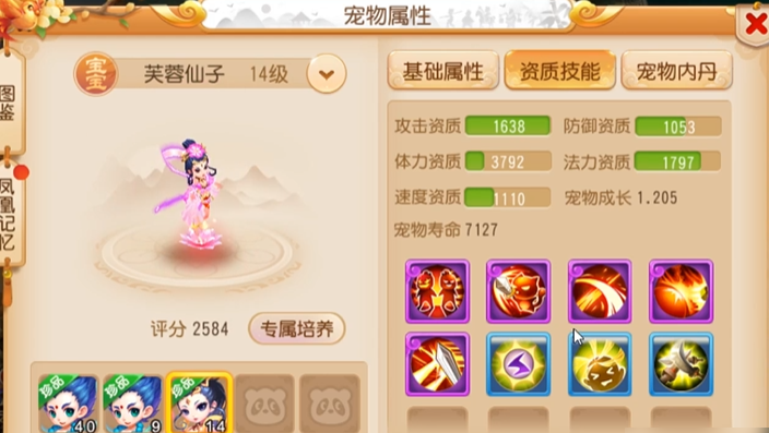 芙蓉仙子虽初始技能偏防御向,但通过打书改造可转型为高强度血盾,高级幸运、高级再生等技能赋予其持久站场能力,在团队副本及持久战中能有效保护主力单位。日游神因必带技能多、资质均衡,也常被用于打造抗性血宠或驱鬼战术单位,性价比受到平民玩家青睐。