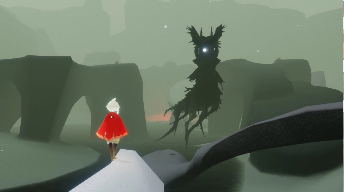 继续深入会遇到更棘手的敌人——冥龙(大家也叫它皮皮虾)。别太紧张,它们通常有固定的巡逻路线。如果被它们头顶的红光锁定住了,千万立刻就近找掩体!矮墙、大石块或者那些破败的管道后面都是好地方,躲进去等红光消失再出来。万一实在来不及躲,还有个保命的办法:马上点屏幕右上角的遇境按钮,进入那个选择是否离开的界面(有打钩和打叉的页面),在里面待几秒再取消返回,这样能避免被撞掉光之翼。遇到挡路或烦人的螃蟹,长按自己角色发出大叫,声波可以把它们掀翻,不过掀翻后也快点走开,别靠太近。