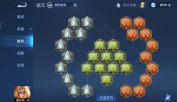 铭文搭配采用百穿方案,十鹰眼提供物理穿透,十隐匿增加物理攻击和移速,十异变强化穿透与攻击效果,这套组合直接提升夏洛特的线上压制力,使其前期对拼时能快速叠被动,中后期配合装备穿透轻松秒杀脆皮目标。百穿铭文的优势在于弥补夏洛特基础伤害的不足,确保技能和强化普攻能无视部分护甲,同时移速加成帮助灵活走位,配合二技能位移快速追击或撤退,在实战中这种铭文设置能让回血机制更高效,通过频繁技能释放维持血量,并抓住机会一击致命。
