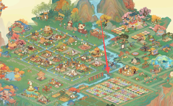 桃源深处有人家的花园位于游戏中的桃源乡深处,具体坐落在一座小山坡上,四周被郁郁葱葱的树木环绕,远离城市喧嚣,营造出宁静幽雅的环境。花园中央有一条缓缓流淌的小溪,水面倒映着花草树木,形成一幅水墨画般的景致。布局包括精心修剪的绿植、一座悬挂风铃的小亭子、假山瀑布飞流直下的水景,以及一片可供休憩的草地躺椅区域,整体设计强调自然和谐,让玩家仿佛置身于世外桃源般的避世之地。季节变化丰富花园的体验,春季花卉绽放香气扑鼻,夏日绿草如茵提供避暑空间,秋季枫叶绚烂多彩,冬季则银装素裹洁白无瑕,这增强了游戏的沉浸感和视觉美感 。