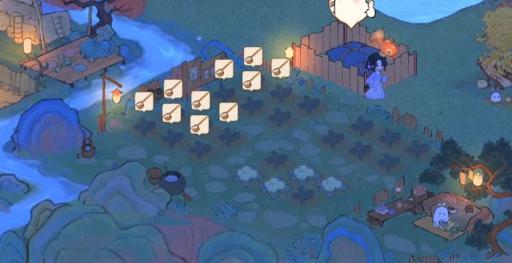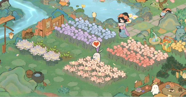 花园的位置细节强化了其独特氛围,小溪、亭子和假山瀑布不仅提供视觉享受,还伴随鸟语花香和流水声的音频效果,营造出远离尘嚣的静谧感。布局上,绿植点缀和小径设计引导玩家探索,躺椅区域鼓励休闲互动,而季节动态变化让环境保持新鲜感,避免单调重复。这种设计不单是装饰元素,还融入功能性,如亭子风铃的清脆声响增添听觉维度,假山瀑布带来清凉效果,贴合游戏整体国风田园主题,提升玩家的情感联结和探索欲望 。