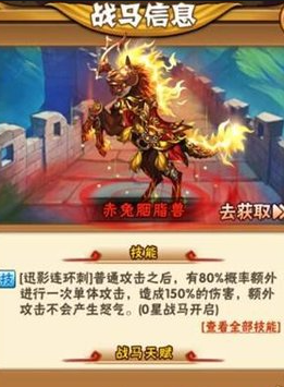 张飞作为蜀国核心武将之一,其战马搭配需围绕其定位展开。张飞通常担任前排坦克兼输出角色,战马选择应优先考虑生存能力与技能增益效果。赤兔马提供的高额防御加成与免伤效果能显著提升张飞的战场存活率,而的卢马的特殊效果可在受到攻击时概率触发反击,与其高武力特性形成互补。战马培养需注重基础属性的强化,防御和生命值词条为优先选择方向。