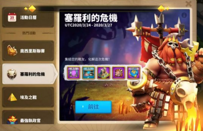 塞罗利的危机是万国觉醒中的一项四人组队副本活动,玩家需协作击退五位反叛的塞罗利王族以拯救王国。参与此活动需满足基础条件:城市大厅等级达到10级。活动提供多种难度选项,玩家可依据自身战力自由选择,需注意不同难度设有最低战力门槛且奖励存在差异。该副本支持跨王国组队,玩家可与好友或匹配队友共同挑战。战斗采用即时制,队伍需在限定时间内击败当前首领,失败则挑战终止。战斗中所有士兵损耗将在结束后自动恢复,无需消耗治疗道具。每位首领在活动周期内仅允许挑战三次,无论选择何种难度,奖励结算与输出贡献直接挂钩:中途退出或伤害未达1%者无法获得奖励,伤害占比越高则奖励品质越优。