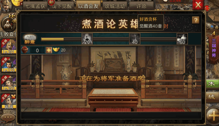 酒是重要的战略资源,主要用于武将觉醒、获得增益效果及参与特定活动。获取酒的核心途径是建造并升级城池内的酿酒工坊,这是酒最稳定可靠的来源。玩家需要消耗粮食作为原料进行酿制,酿酒过程需要一定时间,工坊的等级直接决定了酒的生产效率和产量上限。持续投入资源升级酿酒工坊是保障酒资源供应的基础。