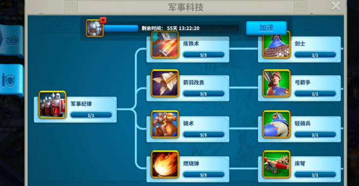 科技研发集中升级对应兵种攻防属性及训练速度;装备锻造优先打造兵种专属套装,如骑兵侧重攻击加成的先锋套装与雷霆之怒楔形装备。日常资源采集与加速道具应优先保障主战兵种持续补充,避免多线发展导致的战力稀释。