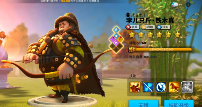 步兵体系需搭配理查一世、亚历山大等防御型将领强化承伤能力;骑兵核心依赖铁木真、萨拉丁等突进型统帅放大机动优势;弓兵则需李成桂、爱德华等远程增益将领。注意优先觉醒关键统帅,例如铁木真觉醒后触发二次技能概率显著提升战场压制力。天赋加点需严格匹配兵种专精树,步兵点出阵型防御,骑兵强化急行军与冲锋伤害。