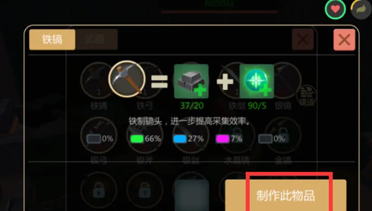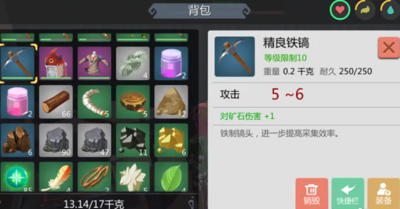 看到图标就成功在望啦!直接点击那个石镐图标,嗖的一下,一把崭新的石镐就做好并自动放进你的背包了。这时候别忘了打开背包检查一下,找到它然后点击装备,这样石镐就真正属于你,可以派上用场了。有了它,挖矿效率可比徒手或者木镐高多了,特别是对付那些普通的石头矿,挖起来会轻松不少。