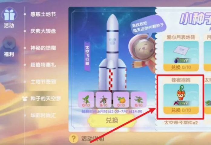 最直接的方法就是参加游戏里的限时活动了。官方时不时会推出一些主题庆典,比如之前的土地节活动,就是拿到辣椒抱抱的好机会。活动期间,咱们得留意公告,积极参与指定的任务或者小游戏,比如种植特殊的太空种子、完成日常活跃度目标,或者参与像烟花秀这样的特定玩法。完成这些活动要求,攒够活动专用的兑换材料,比如活动积分或者特定的农作物,就能在活动界面找到辣椒抱抱,直接把它兑换出来啦。这类活动通常是有时间限制的,错过了就得等下次机会了。