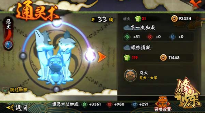 装备通灵术是提升战力的重要环节,其核心在于理解通灵系统的激活逻辑与资源分配策略。通灵术入口位于游戏主界面左下方,与装备、饰品等玩法并列,点击即可进入通灵术界面。玩家需通过完成主线关卡解锁首个通灵兽忍犬,后续通灵兽的激活则依赖于通灵术等级的提升——每层通灵术需消耗声望与铜币进行研习,达到指定进度后方可解锁下一层对应通灵兽。例如忍犬达到45级后可解锁蓝蛇,更高阶的通灵兽需逐层突破通灵术等级限制。此过程中,每次通灵操作均会积累进度,建议优先选择十连通灵以触发额外进度奖励,从而优化资源消耗。