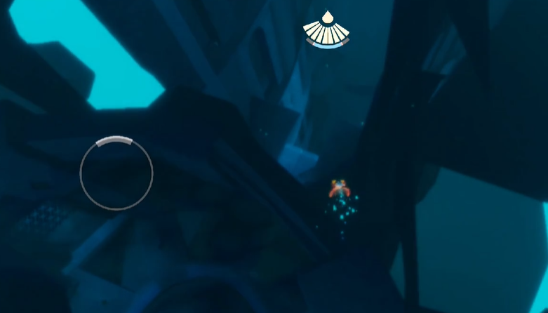 塔顶的入口是一个巨大的圆形洞口,就在平台中央。降落时注意找边缘的缺口,那里是进入的最佳位置。洞口内部幽暗深邃,往下看能看到多层结构。从这里开始需要切换潜水模式,长按屏幕下潜进入塔内。下潜过程中屏幕上方会出现蓝色氧气条,记得随时观察——氧气消耗很快,一旦见底就会损失光翼。