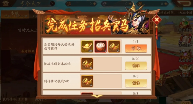 绝世功勋是兑换顶级武将碎片、金将变装、幽蝶羽毛等高价值资源的核心货币。获取途径主要依赖号令天下活动,通过捐献军旗、军鼓、军号等道具积累贡献值转化成功勋,其中充值、活跃任务和登录奖励是道具的主要来源。需注意贡献道具获得的三种功勋不会过期,可留至后续同类活动使用。