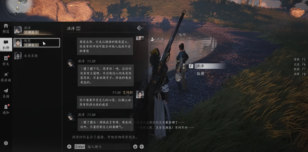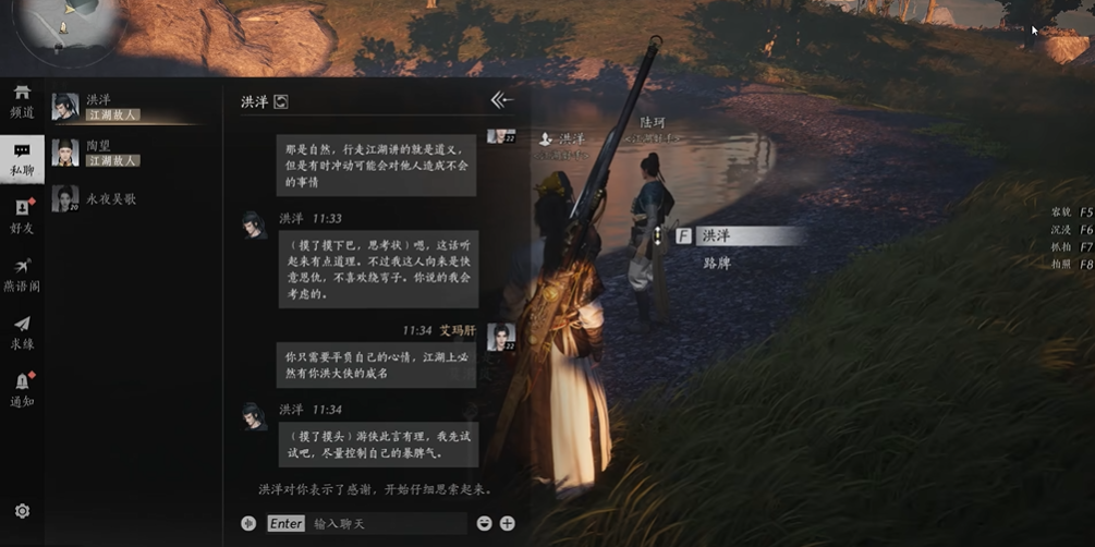 洪洋位于清河地区抱山湖湖边的一个NPC玩家在探索该区域时可以找到他进行互动。这个角色在初次接触时通常会表现出较为激动的情绪,需要玩家通过特定的对话方式来建立关系。找到洪洋的位置是攻略过程中的首要步骤,他站在抱山湖的岸边,玩家接近后即可开启对话序列。游戏设计通过这种人际交流环节来增强武侠世界的沉浸感,玩家需以平态度介入,才能顺利推进后续内容。