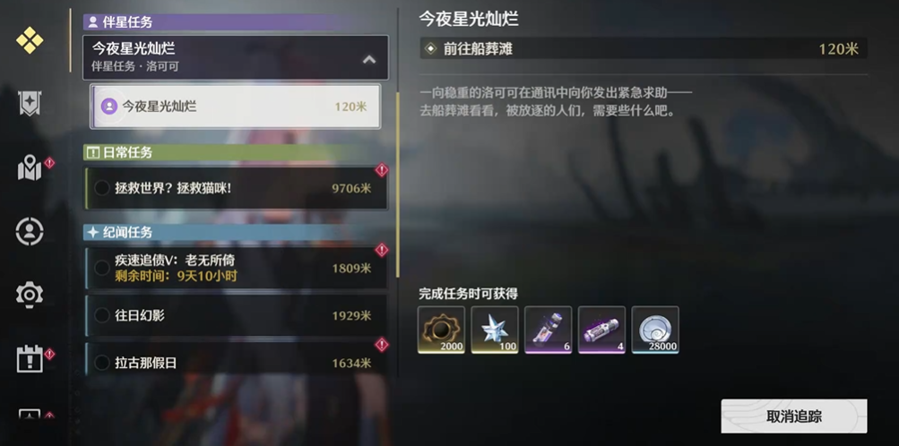 整个任务流程的叙事性较强涉及不少角色对话和情节演出。在任务接近尾声时,你会经历一段感人的剧情,并可能触发特殊的背景音乐。完成所有任务目标后,你不仅能收获任务本身给予的经验、贝币等常规奖励,还能解锁与洛可可相关的成就,并永久开启她在世界地图上的相关交互或彩蛋点位进行任务前有一个实用的准备提示:考虑到剧情演出的最佳体验,建议在开始洛可可的伴星任务前,提前将你自己操控的漂泊者角色切换为女性形态。