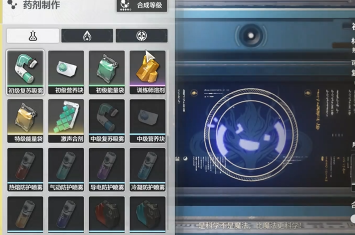 首先需要了解其定义与获取途径。游戏内的消耗品主要分为食物和药品两大类,其中药品的功能专注于恢复,包括回复生命值、耐力或充能,部分还具备复活功能,这便是耐力药剂的所属类别。获取药剂的主要方式是掌握其配方并通过合成台制作,配方可通过完成先行公约等特定任务,或提升合成台中药剂制作的合成等级来解锁,例如达到一星制药学徒等级可获得基础配方,更高等级则会解锁更多种类的溶剂或合剂配方。这意味着玩家需要积极完成任务并提升制作熟练度,才能稳定地生产所需的耐力药剂。