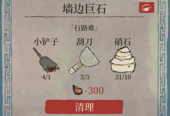在执行整个清除任务时,有几点需要玩家留意。一是确保体力储备充足,因为清理多块石头需要连续消耗体力。二是在探索时保持耐心,仔细扫描围墙周边区域,避免遗漏任何一块丑石。三是在游戏的不同探险章节中,清除大型障碍物的方法可能有所不同,例如在其他地图中可能需要使用火药等特定道具,但针对桃花坞的这一特定巨石,其解法是固定且唯一的,即通过清除指定丑石来解除限制。