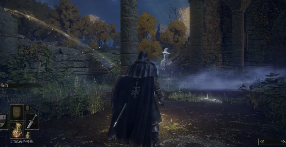 DLC流程分三阶段:进入幽影地至米凯拉碎环前,完成弗雷对话并探索塔之镇,击败神兽舞狮获取民宅祭坛关键道具;碎环后至幽影城保存库前,推进恩希斯城并迎战双月骑士;最终击杀梅瑟莫触发结局分歧。此间落叶丹恩支线需通过切磋姿势触发战斗,最终在劳赫遗迹获取拳套,而龙女巫芙柔桑克斯支线需在尖刺山交付休里耶毒药以改变结局。