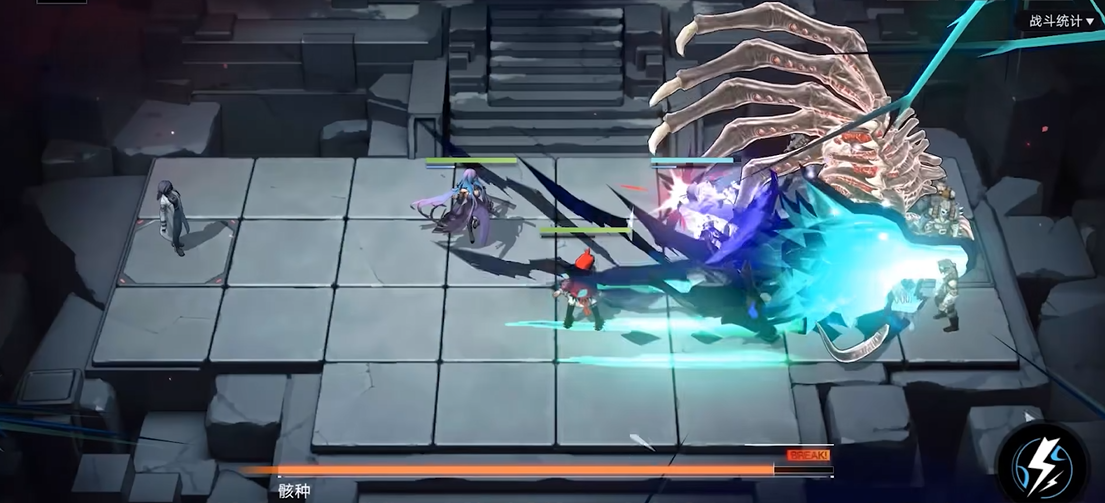 赫罗定位为物理前排输出兼破核手,核心机制围绕战纹与横扫展开,实战中每累计6次伤害即可激活战纹,获得减伤与物理穿透加成,战纹状态下每第三次普攻触发横扫,对身前大范围敌人造成高额物理伤害并回复生命值,生存与输出循环自成体系。必杀天崩地裂消耗35点能量,对自身及身前一格造成600%物理伤害与1点核心伤害,释放时还会附加短暂减伤,既能快速破核又能补足爆发,面对双核心敌人时可连续大招破核,应对精英与BOSS表现稳定。被动噬命让横扫击中敌人时回复生命值,配合战纹减伤,大幅提升站场能力,无需依赖奶妈也能持续作战,减少队伍治疗压力。